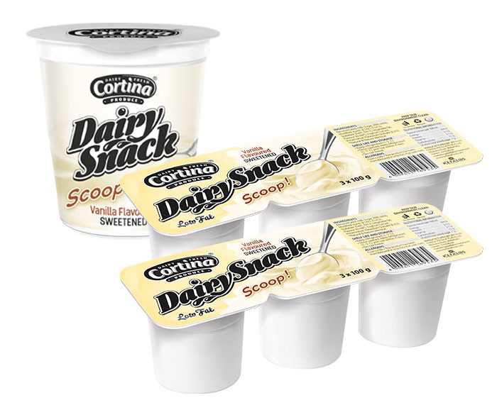 A smooth scoop of vanilla, Cortina Dairy Snack Scoop, perfect for all day snacking.